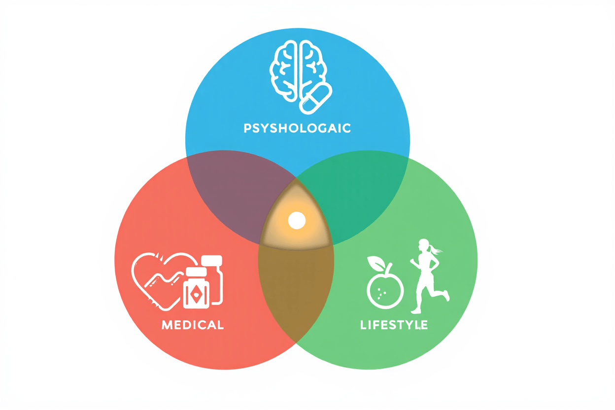 قصور الغدة الدرقية، فقر الدم 🩸، اضطرابات المناعة الذاتية، متلازمة التعب المزمن، الفيبروميالغيا، اختلال التوازن الهرموني ⚖️، نقص الفيتامينات (خصوصًا B12 وD) 💊، الآثار الجانبية للأدوية، كوفيد-19 الطويل 🦠، واضطرابات النوم المزمنة 😴.